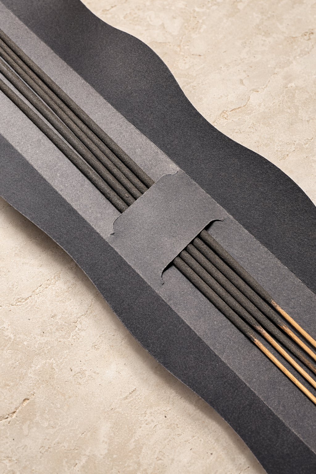 A singular sculpted form created for the presentation of standard 11-inch incense sticks.